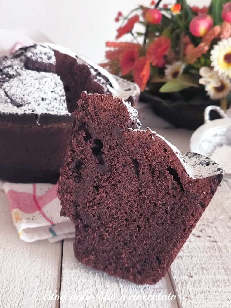 Schmelzen Sie die Schokolade im Wasserbad und geben Sie dann die Butter dazu und lassen Sie sie abkühlen. In einer ausreichend großen Schüssel schlagen Sie die Eier mit dem Joghurt und der Milch auf, fügen Sie das Aroma hinzu und danach nach und nach alle trockenen Zutaten und schließlich die geschmolzene Schokolade. Gießen Sie alles in eine Aluminiumform für den Crescia-Käsekuchen, die eingefettet und bemehlt ist, und backen Sie bei 180 Grad für etwa 35 Minuten, aber machen Sie immer den Stäbchentest. Aus dem Ofen nehmen und mit Puderzucker bestäuben.