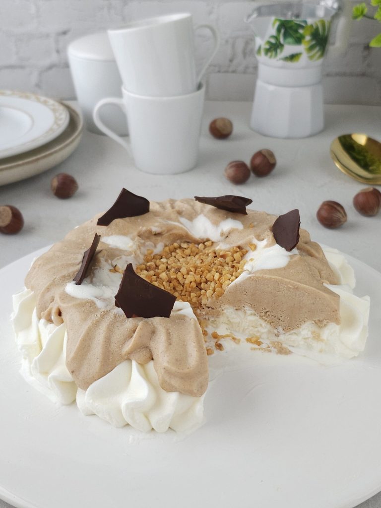 Und hier ist die Sahne- und Haselnuss-Eistorte fertig. Ich hoffe, euch gefällt mein neuestes Rezept, bis zum nächsten Mal, Freunde.