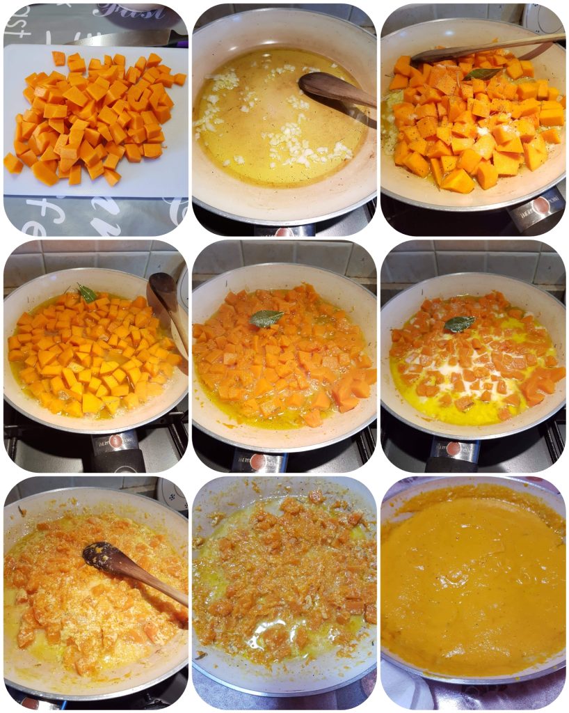 Schritte für die gebackene Pasta mit Kürbis, Speck und Mozzarella