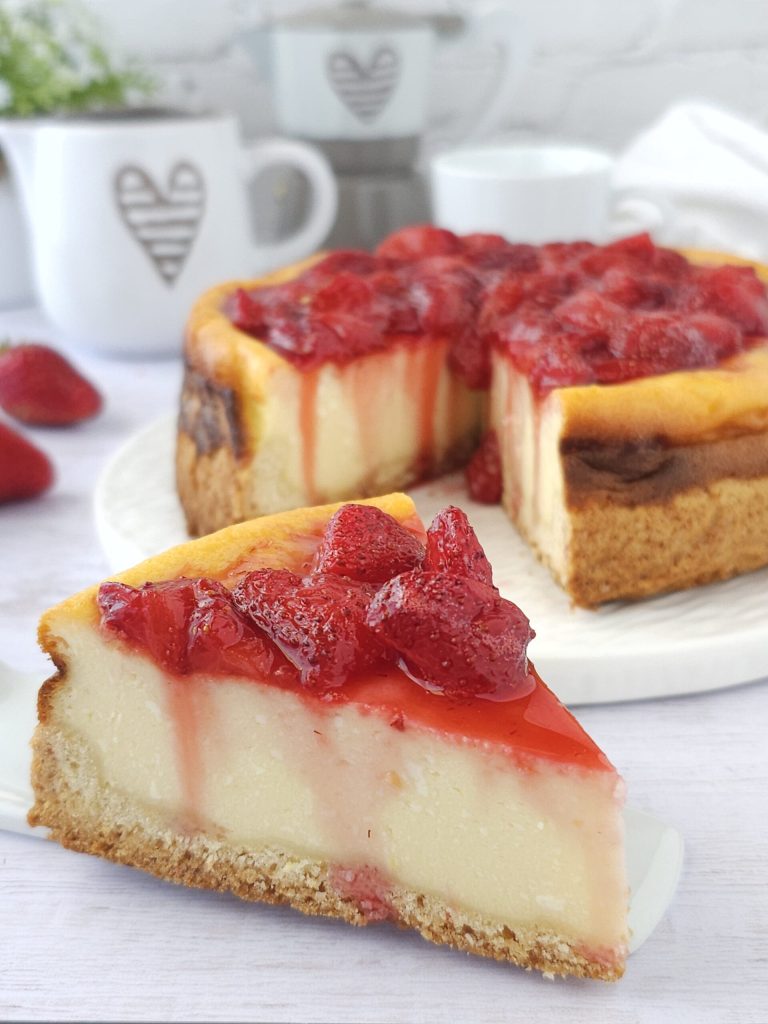 Gebackener Ricotta- und Erdbeer-Käsekuchen