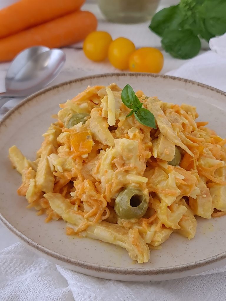 Hallo Freunde, heute schlage ich euch diesen köstlichen kalten Hähnchensalat vor, den man an heißen und schwülen Sommertagen genießen kann. Ich muss euch sagen, dass ich ihn auch im Winter gerne zubereite und warm genieße. Es ist nicht der klassische Hähnchensalat mit Mayonnaise, sondern ich verwende eine hausgemachte Sauce mit Joghurt und Senf. Unten findet ihr das Rezept..