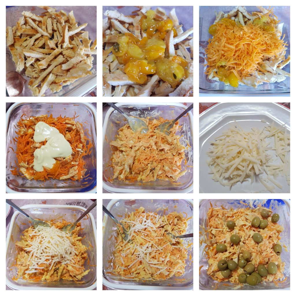 Den Hähnchensalat auf einem Servierteller servieren und genießen. Ich hoffe, dieses letzte Rezept gefällt euch, bis zum nächsten Mal, Freunde.