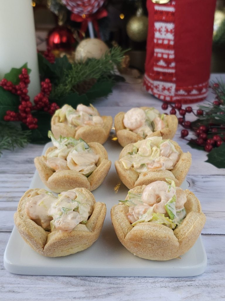 Hallo Freunde, heute schlage ich euch diese köstlichen herzhaften Törtchen mit Garnelen vor, die sich als Vorspeise für besondere Anlässe eignen. Ich habe einen herzhaften Mürbeteig für die Törtchen gemacht und sie dann mit Garnelen, Cocktailsauce und Salat gefüllt. Unten findet ihr das Rezept..