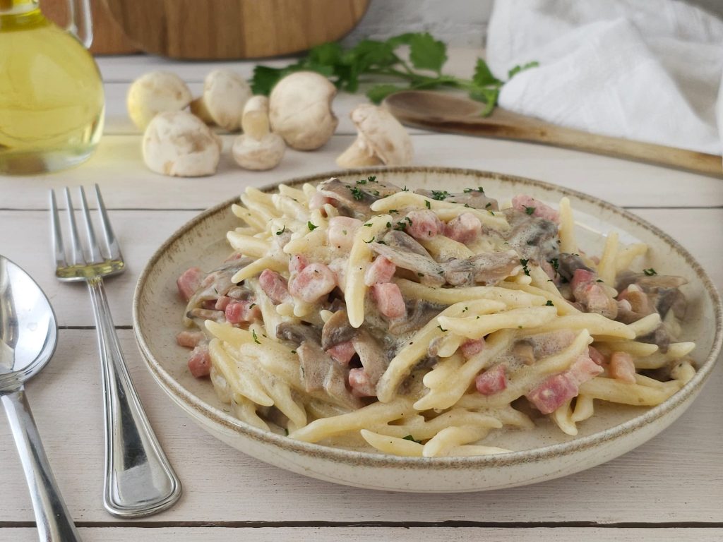 Hallo Freunde, heute schlage ich euch diese köstlichen Trofie mit Champignons und Speck vor, die ihr als leckeres Hauptgericht zum Mittag- oder Abendessen zubereiten könnt. Ich liebe Champignons sehr, aber ihr könnt auch Steinpilze verwenden, wenn ihr möchtet. Nachfolgend findet ihr das Rezept..