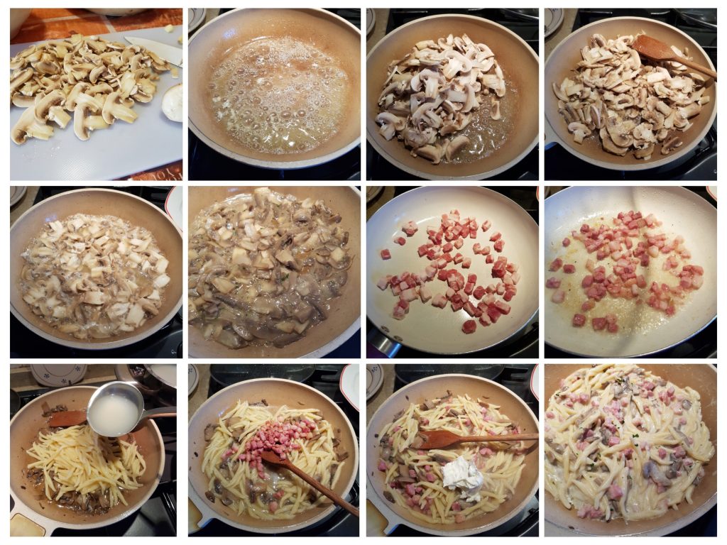 Schritte für die Trofie mit Champignons und Speck