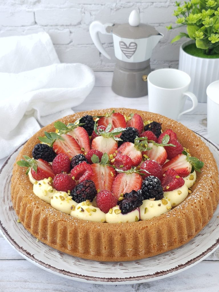 Um diese wunderbare weiche Torte mit Waldbeeren und Diplomatcreme herzustellen, muss man die weiche Torte und die Puddingcreme im Voraus vorbereiten. Für die weiche Torte findet ihr den Link zur Herstellung hier https://blog.giallozafferano.it/rosly/ricetta-crostata-morbida/