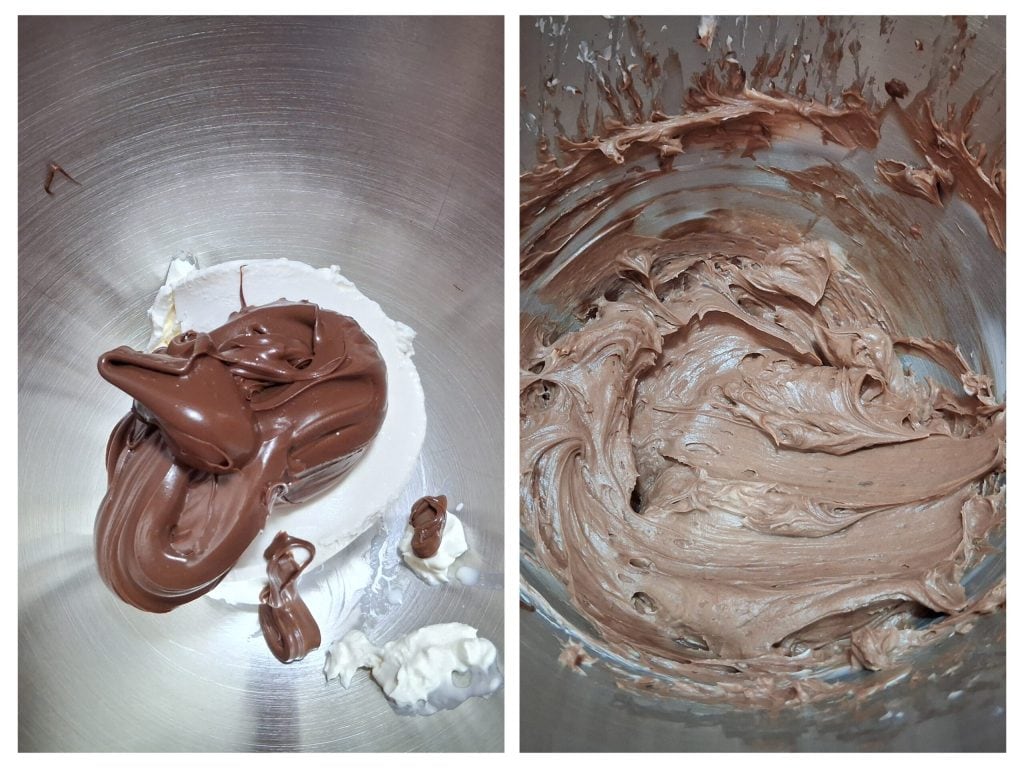 In einer Schüssel den Mascarpone und die Nutella mit einem elektrischen Schneebesen vermischen, bis eine schaumige und homogene Mischung entsteht.