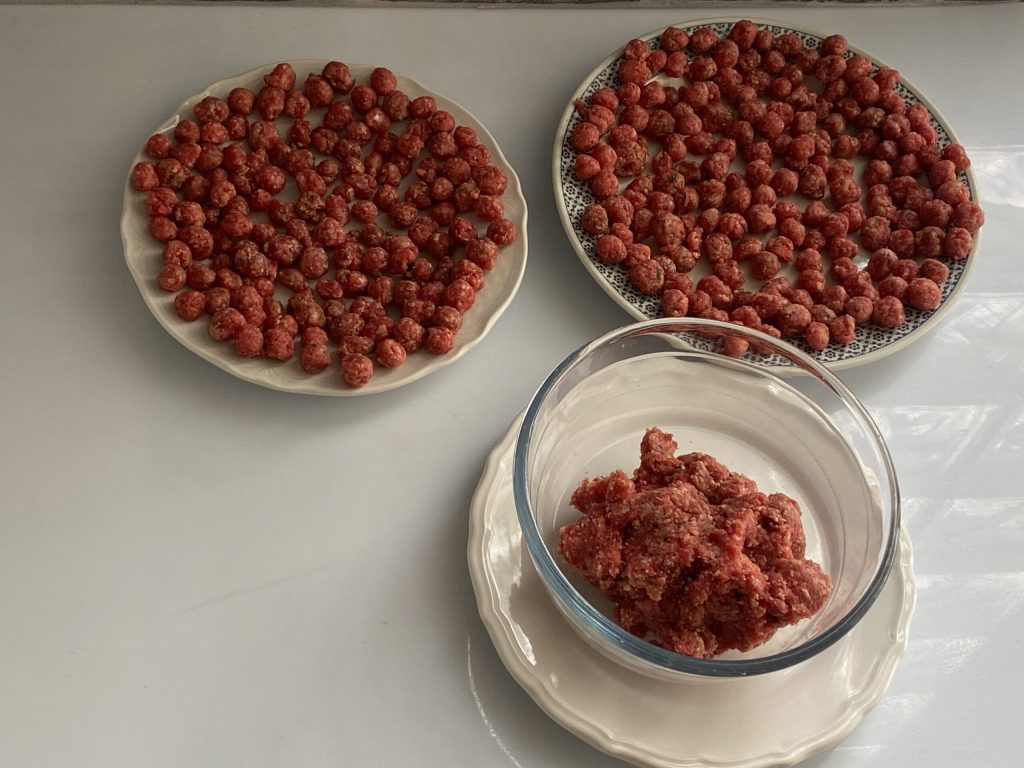 Mit leicht feuchten Händen gleichmäßige Fleischbällchen formen (ca. 2-3 cm Durchmesser).