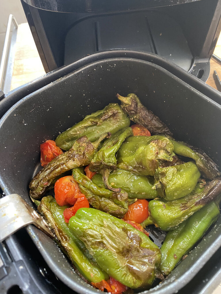 Denken Sie daran, dass die Garzeiten je nach Leistung Ihrer Heißluftfritteuse und der Größe der Friggitelli variieren können, daher empfehle ich Ihnen, sie während des Garens zu überprüfen, um das gewünschte Ergebnis zu erzielen. Guten Appetit!