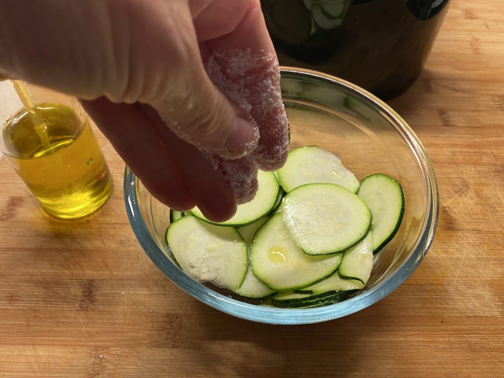 Heißluftfritteuse: Zucchinischeiben mit sehr wenig Öl