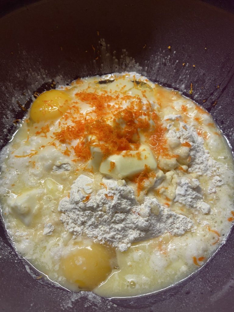– Wenn der Teig zu weich ist, fügen Sie etwas Mehl hinzu; wenn er zu trocken ist, ein paar Esslöffel Orangensaft.