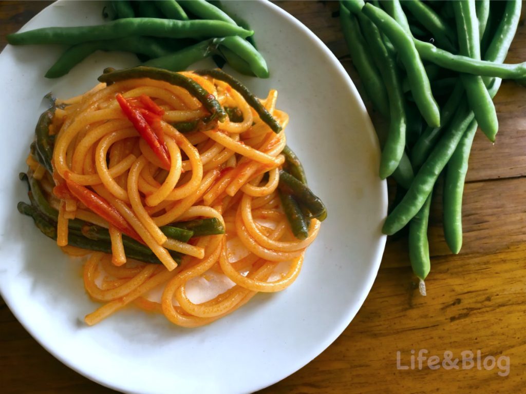 Dies ist ein köstliches Sommerrezept: Spaghetti und grüne Bohnen mit Tomatensauce. Dieses klassische Gericht aus der süditalienischen Küche ist perfekt für heiße Sommertage, dank der Frische und Güte der verwendeten Zutaten.