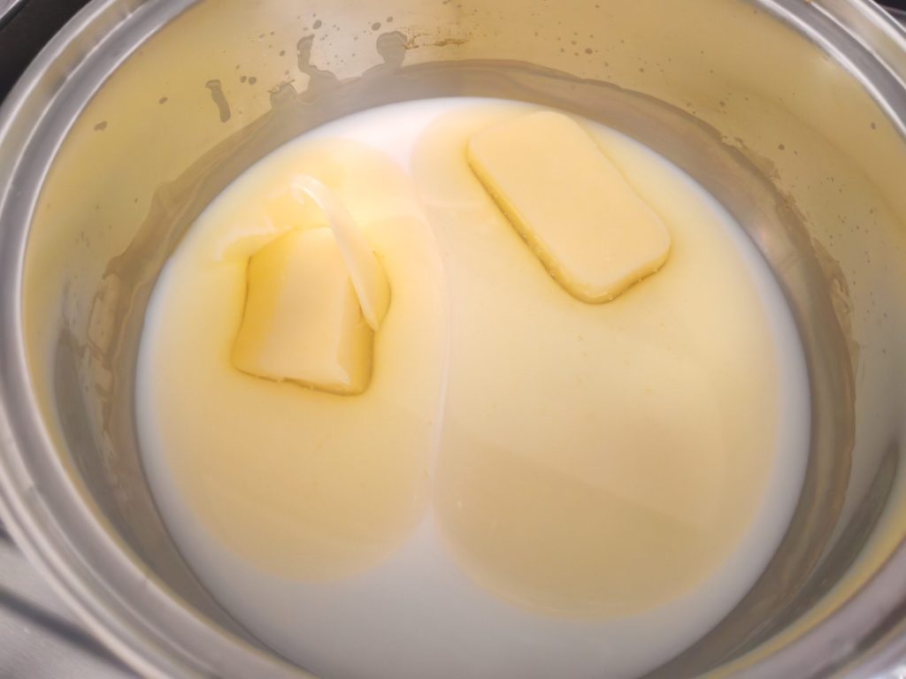 In einem Topf Butter, Wasser, Milch, Salz und Zucker geben. Sobald es zu kochen beginnt, das Mehl hinzufügen und mit einem Holzlöffel zügig rühren, die Flamme für einige Minuten erhöhen, bis es dicker wird.