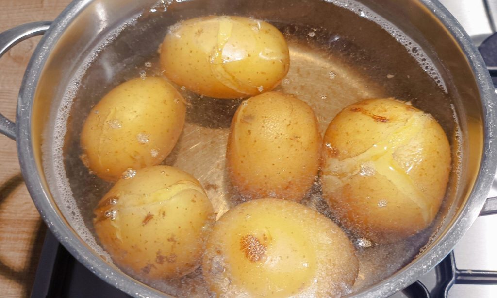 Zuerst die Kartoffeln in Salzwasser kochen. Die Kochzeit hängt von der Größe der Kartoffeln ab, etwa 20 Minuten, aber prüfen Sie, ob sie weich genug sind, indem Sie mit einer Gabel einstechen.