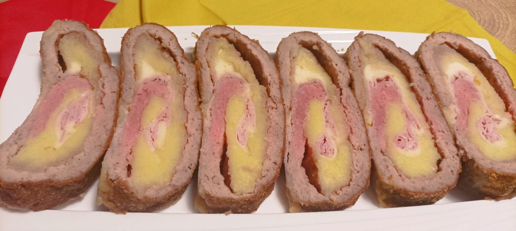 Ein klassisches Hauptgericht, das jeder mindestens einmal zubereitet hat, der gefüllte Hackbraten, eine einfache Zubereitung, bei der jeder entscheiden kann, wie er ihn nach seinem Geschmack füllt. In der Regel ist es ein Sonntagsgericht, wenn mehrere Personen zusammen essen, da es im Voraus zubereitet werden kann und Neugier für seine Füllung weckt. Es ist schwer, jemanden zu finden, der es nicht mag. Das Rezept, das ich Ihnen vorschlage, ist einfach und zart. Neben dem klassischen Schinken und Käse habe ich Kartoffelpüree hinzugefügt, um ihn noch weicher zu machen und ihn feucht zu halten, damit das Innere nicht austrocknet. Sie können es mit einem hervorragenden und gesunden Beilagen aus gegrilltem Gemüse servieren. Dann bleibt Ihnen nichts anderes übrig, als es auszuprobieren!!