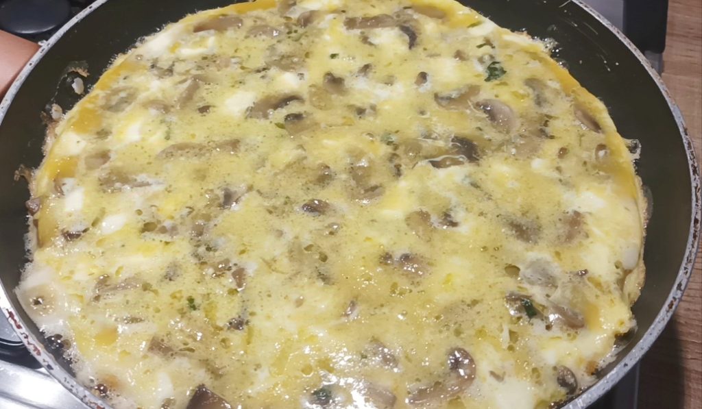 Nach 30 Minuten ist Ihr Omelett mit Pilzen und Mozzarella fertig