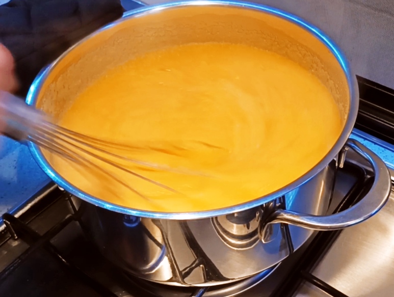 In einem Topf das Wasser erhitzen. Wenn es kocht, das Salz hinzufügen und die Polenta einrühren.