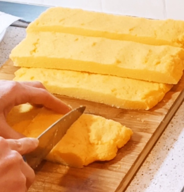 Die Polenta sollte am Morgen vorbereitet werden, damit sie am Abend frittiert werden kann, auch der Vortag ist in Ordnung, wichtig ist, sie mindestens 2 Stunden ruhen zu lassen. Nach dem Frittieren sollten sie sofort verzehrt werden, da sie sonst ihre Knusprigkeit verlieren.