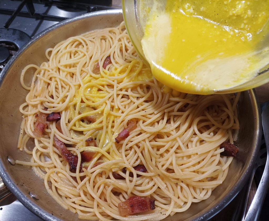 Die Spaghetti alla Carbonara sollten sofort nach der Zubereitung gegessen werden.