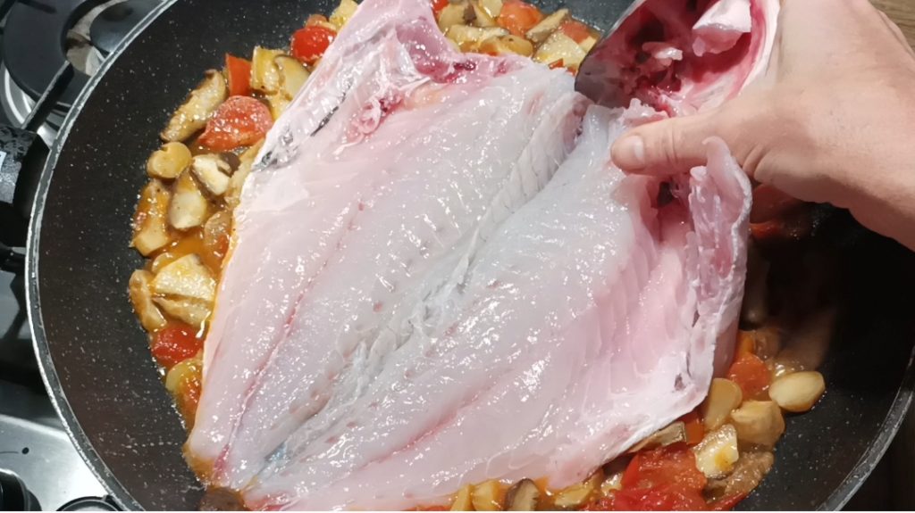 Der Wolfsbarsch mit gebratenen Seitlingen ist hervorragend und schnell zubereitet. Ein besonderes und schmackhaftes Hauptgericht, das sich besonders für ein Sommeressen eignet, da man es nicht im Ofen zubereiten muss. Normalerweise wird der Wolfsbarsch gegrillt oder im Ofen gebacken, wie die meisten Fischgerichte, aber oft kann man die Zubereitung beschleunigen oder kostengünstiger gestalten, indem man ihn einfach in der Pfanne zubereitet. Ich habe für dieses Rezept einen ziemlich großen Wolfsbarsch aus dem Meer verwendet, aber man könnte auch kleinere Zuchtfische wie Doraden und Wolfsbarsche nehmen, solange sie filetiert sind. Auf diese Weise wird der Fisch gut gewürzt und das Fleisch wird schmackhafter, zart und saftig. Jetzt lasse ich euch mit dem Rezept!