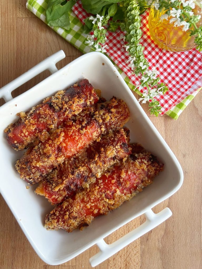 Servieren Sie die sizilianischen gebackenen Paprikarollen heiß oder bei Zimmertemperatur, als Vorspeise oder Beilage.Mizzica, wie lecker!
