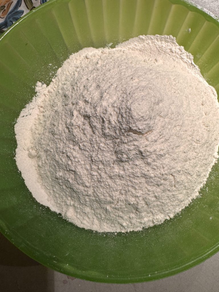 In einer Schüssel die beiden Mehle sieben und vermengen.