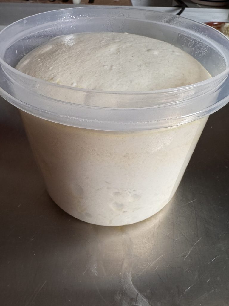 Klar, etwa 80/100 g aufgefrischter und verdoppelter Sauerteig je nach Jahreszeit. Die Gärzeiten könnten sich verlängern, also ist es ratsam, etwas mehr darauf zu achten.