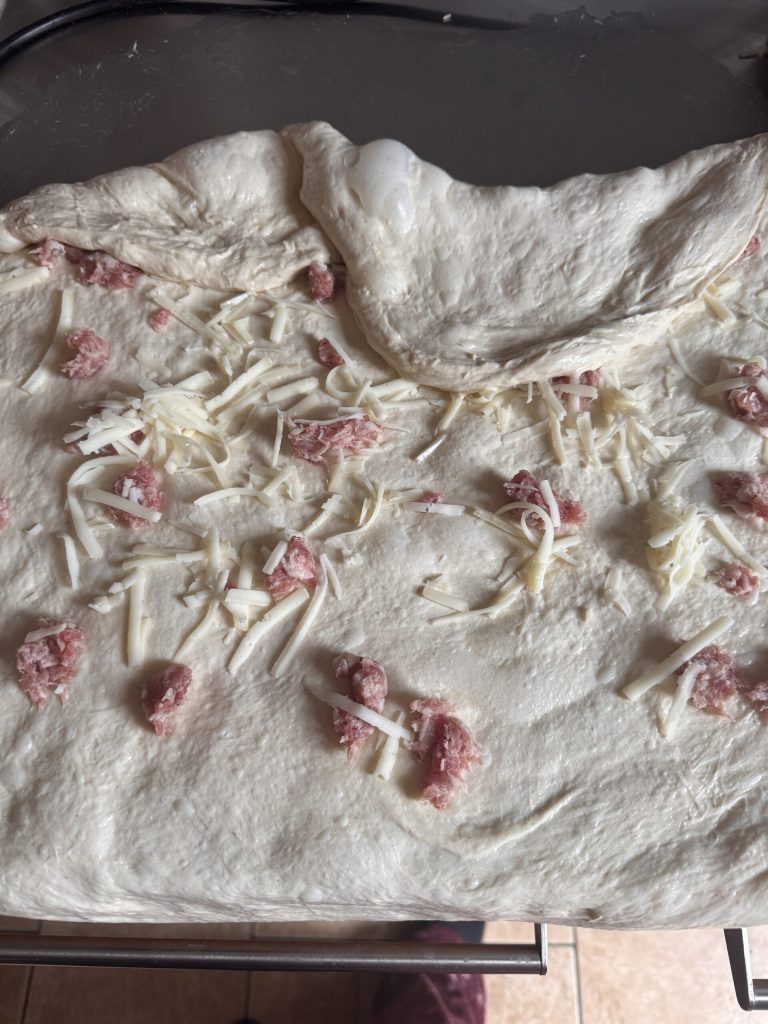 Aufbewahrung der Focaccia mit Pecorino und Wurst
