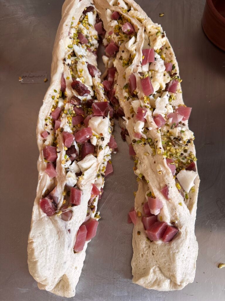 40/50 Minuten backen. Falls die Pistazien drohen, zu verbrennen, die herzhafte Angelica mit Sauerteig in den letzten zehn Minuten der Backzeit mit etwas Alufolie abdecken.