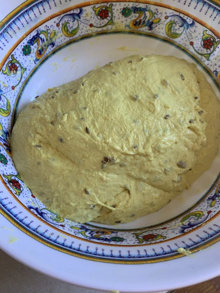 Zubereitung des Kurkuma-Brotes mit gemischten Samen
