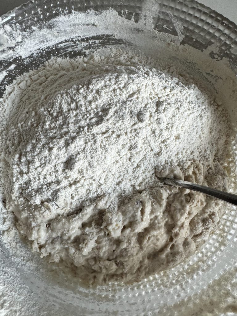 Zu diesem Zeitpunkt einen Teil des Mehls hinzufügen
