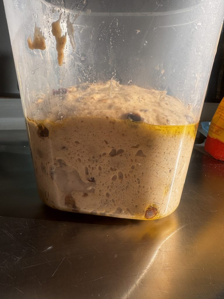 Nach ein paar Stunden bei 24/26 Grad ist es fast auf das Doppelte aufgegangen.