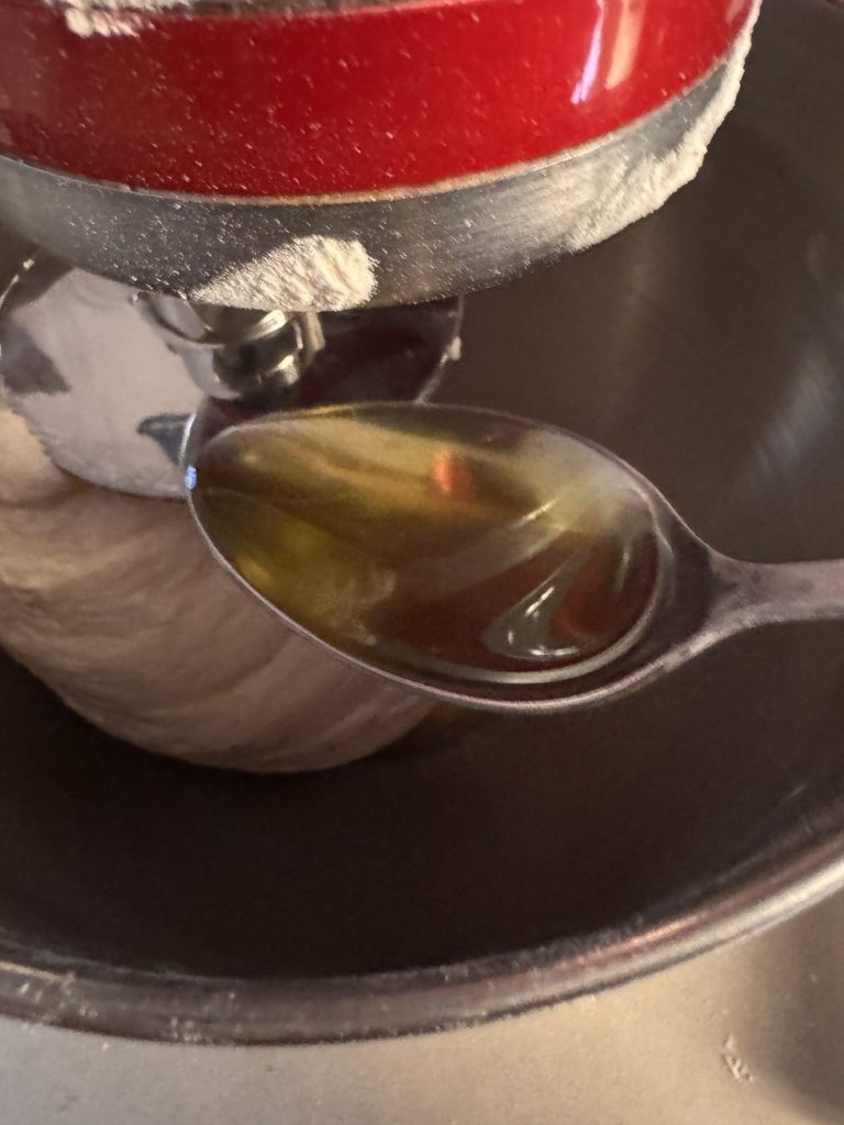Das Öl (auch Samenöl oder EVO) nach und nach hinzufügen, bis es gut aufgenommen ist.Mit dem Salz abschließen, die Geschwindigkeit der Küchenmaschine erhöhen und den Teig kneten, bis er elastisch ist.