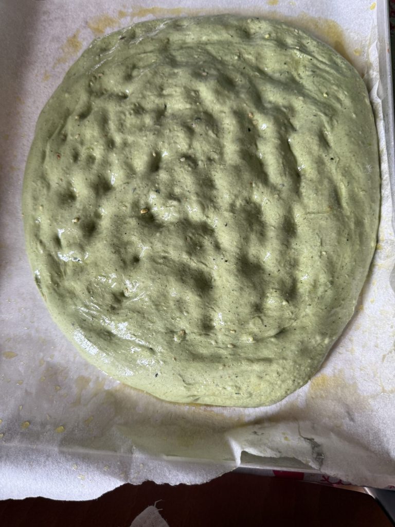 Die Schiacciata mit Schwarzkohl und Sauerteig verbindet zwei meiner Leidenschaften: die Aromen meiner Toskana, besonders die Bruschetta mit Schwarzkohl, meine Lieblingsvariante, und den Sauerteig. Aus dieser Verbindung entsteht eine Schiacciata in schönem Grün, von Natur aus vegan, aber sehr vielseitig: perfekt pur, mit Frischkäse, mit Kichererbsen-Hummus oder mit toskanischem Aufschnitt. Sie darf bei einem Aperitivo mit Freunden oder als leckere Jause nicht fehlen.