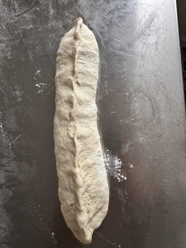 Um die Baguettes schnell zu bekommen, ist die Alternative frische Hefe, etwa ein halbes Päckchen. Mit 100/120 g Sauerteig lassen sich schöne Baguettes herstellen, aber mit längeren Gärungen.