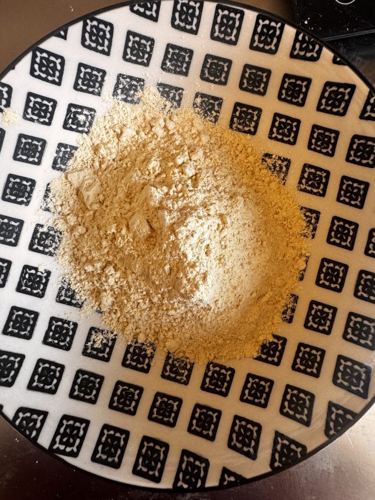 In eine Schüssel das Kichererbsenmehl geben und etwas umrühren, um es zu belüften.