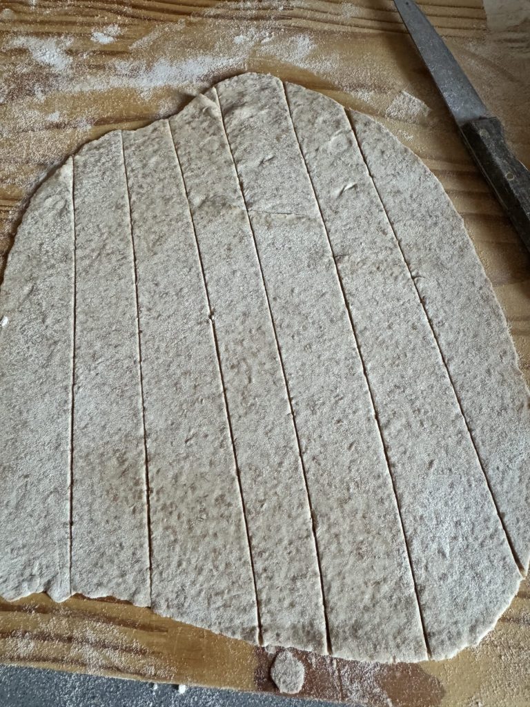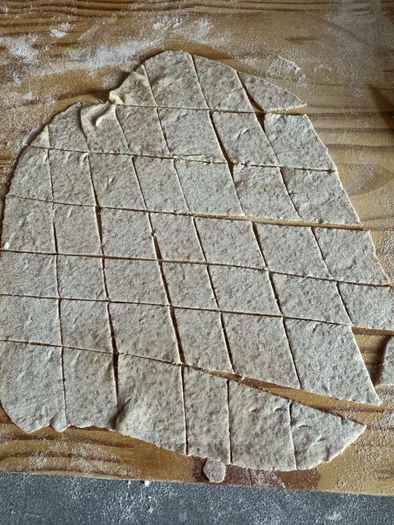 Schritte zur Herstellung von Vollkorn-Maltagliati ohne Eier