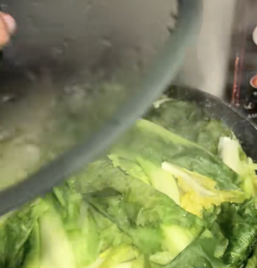 Mit einem Deckel abdecken und bei mittlerer Hitze schmoren lassen, bis sie verwelkt, weich und würzig ist; es dauert etwa 8 Minuten. Mit Salz abschmecken und abkühlen lassen.