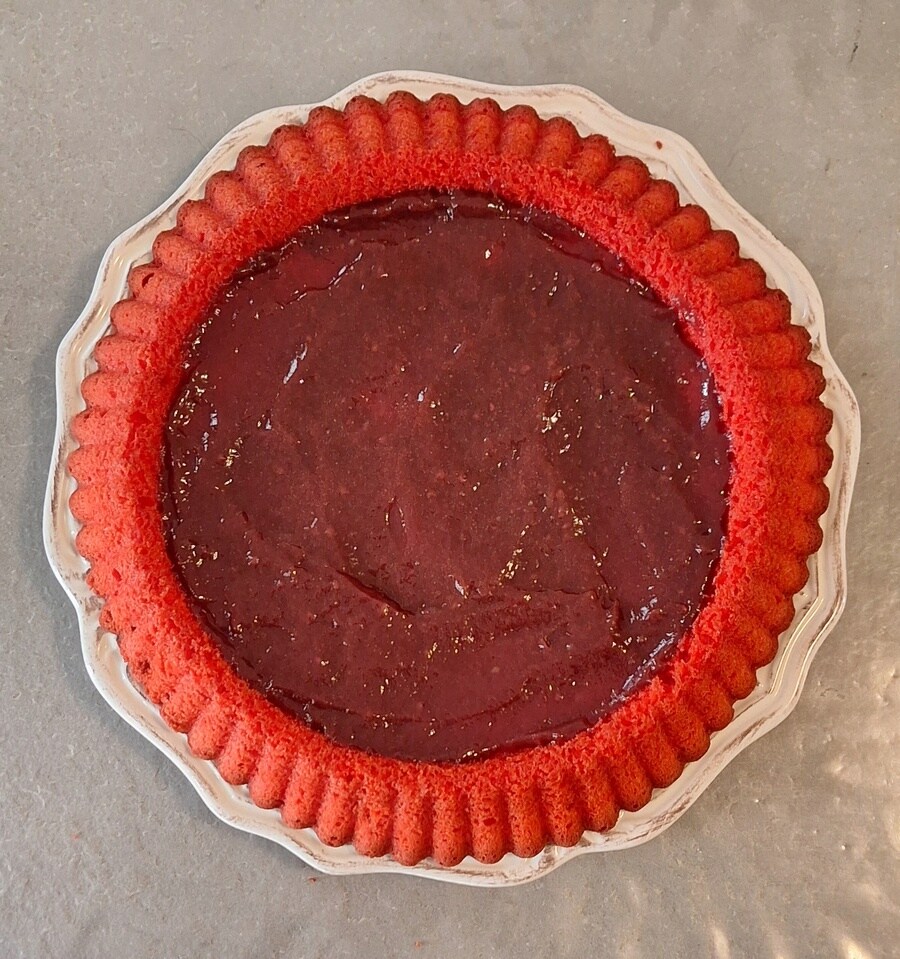 Der Boden für die weiche Weihnachtstorte ist fertig, nehmen Sie ihn aus dem Ofen und lassen Sie ihn abkühlen. Stürzen Sie ihn auf einen schönen dekorierten Teller und lassen Sie ihn vollständig auskühlen.