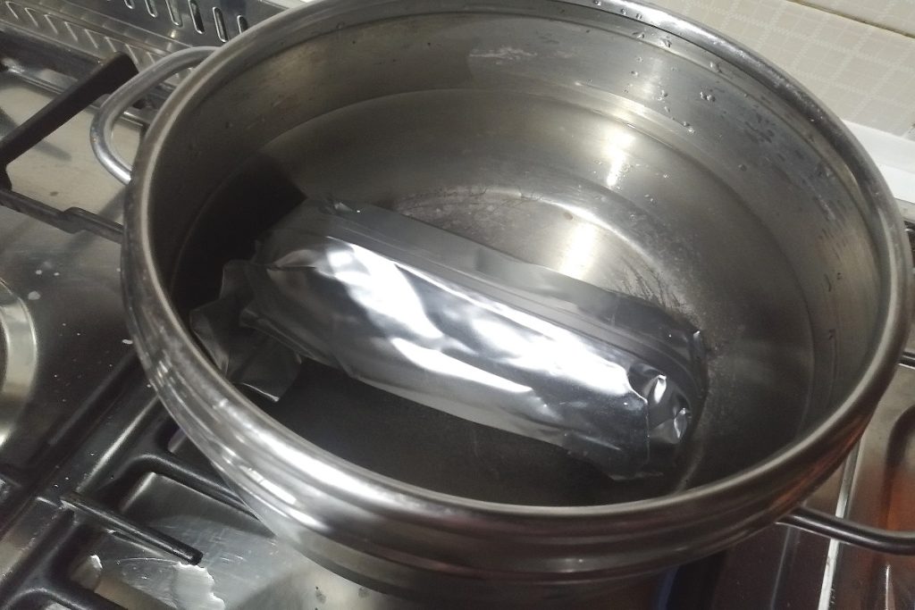 Weiter zum Cotechino: in einen Topf mit Wasser geben und nach Packungsanweisung gar kochen.