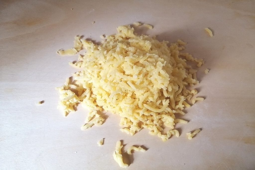 In kleine Stücke schneiden und über die Gnocchi-Rille ziehen.