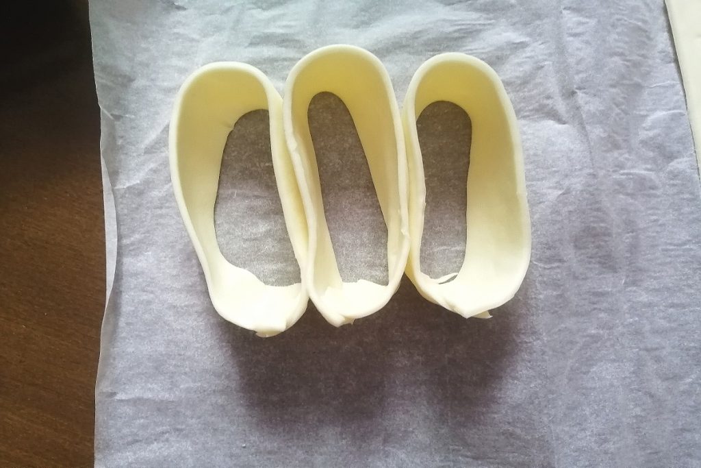 • Einen Streifen nehmen, etwas dehnen und zu einem Ring schließen, drei Ringe nebeneinander formen.