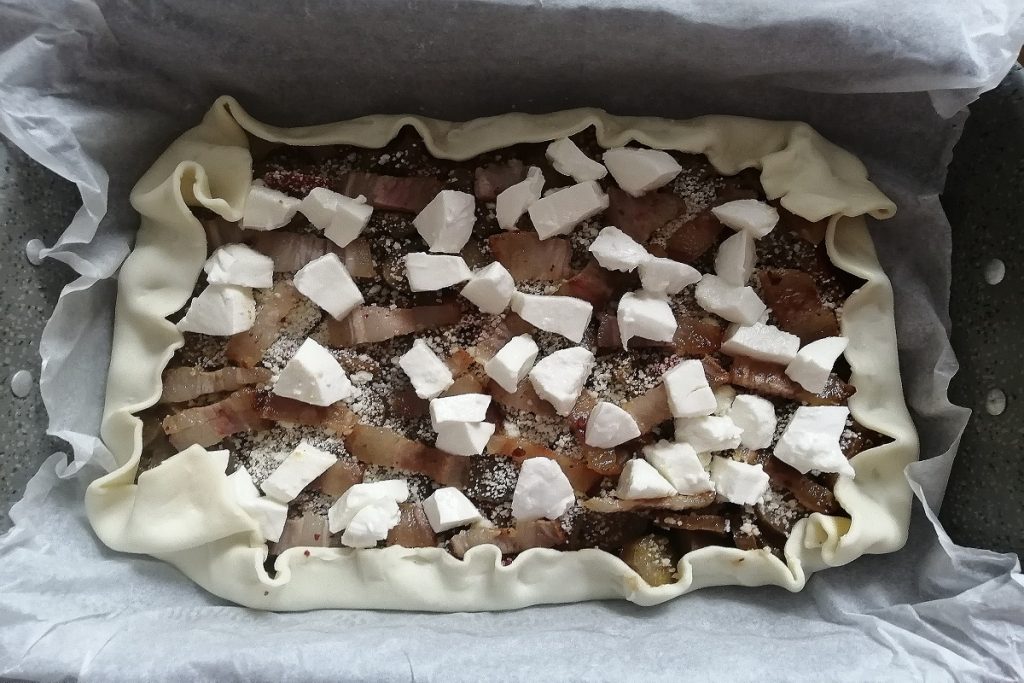 Die herzhafte Torte mit Perlina-Aubergine und Speck, ein schnelles Rezept mit rustikalem Geschmack, das sich für ein Familienessen eignet.