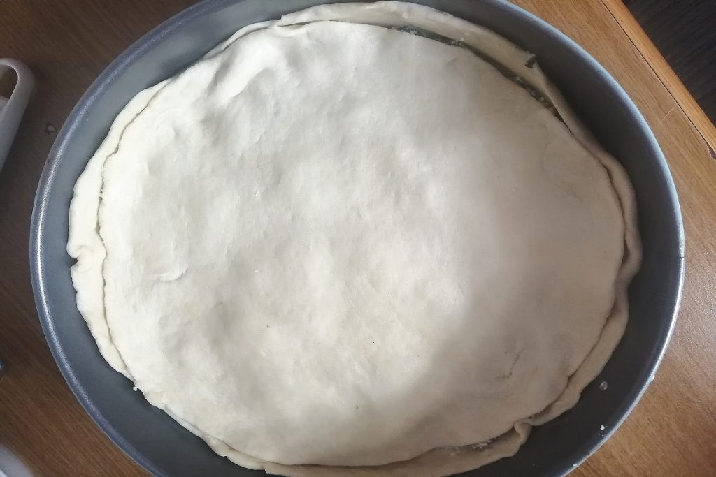 Mit der anderen Teigscheibe abdecken und die Ränder schließen.