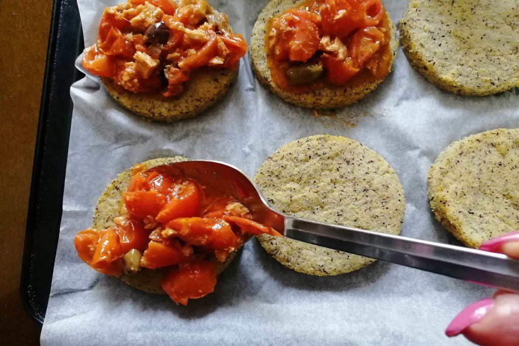 Wirklich köstlich! Und sie sind ganz einfach zuzubereiten, man muss nur die Polenta-Basis vorbereiten und abkühlen lassen. Wenn Sie möchten, können Sie diesen ersten Schritt am Vortag machen und sie dann füllen, wenn Sie sie benötigen.