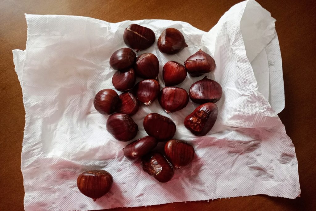 • Wir trocknen die Kastanien, bevor wir sie kochen.