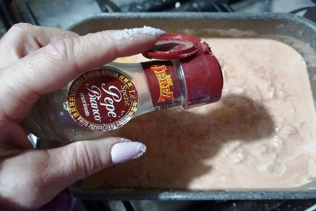 Wir würzen mit Salz und Pfeffer und lassen es 10 Minuten bei schwacher Hitze kochen.