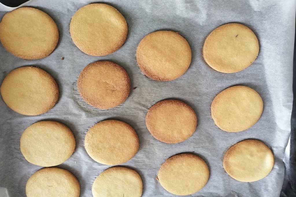 Mit einem Ausstecher (wenn nicht vorhanden, geht auch ein Nutelladeckel) die Plätzchen formen.