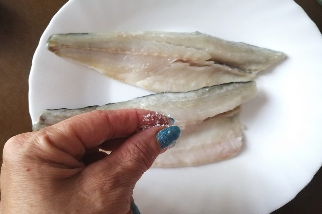Die Wolfsbarschfilets mit Salz und einer Prise Kurkuma würzen.