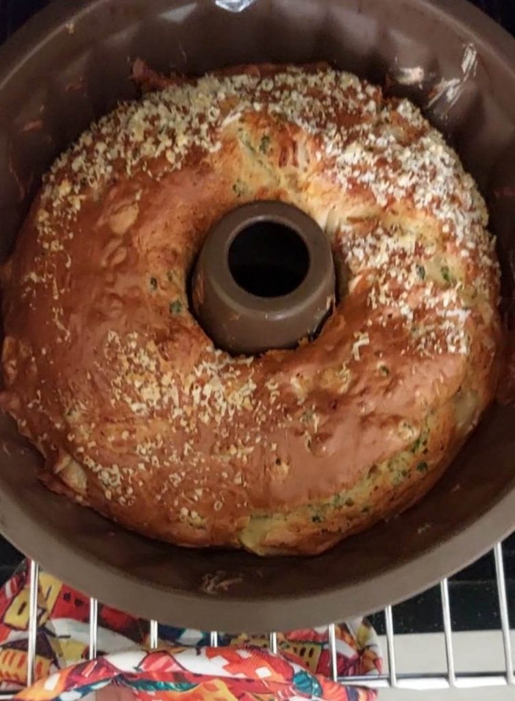 In eine gut geölte Kranzform gießen und im Ofen bei 180 Grad 45 Minuten backen. Vor dem Herausnehmen dennoch die Garprobe mit einem Zahnstocher machen.